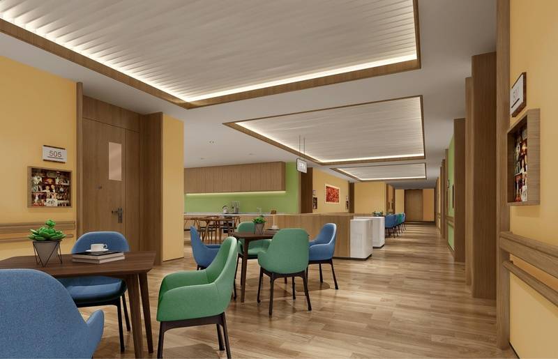 全屋采用无尖角家具、防滑静音地胶、防眩光灯具,配备智能护理床、一键呼叫系统、24小时中央热水等高端设施,轮椅通行无障碍。失智长者单独分区管控,门禁系统杜绝走失风险;失能区域引入日本“团屋”理念,营造家庭式群居氛围。5000元/月起即可享受分区照料,细节适配不同长辈需求。