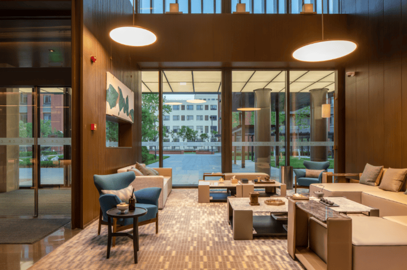 社区总建筑面积约6万平米,分设自理公寓(436张床位)、护理公寓(360张床位)及亲情公寓(套房),房型包括单人间、一室一厅、两室一厅等,适配不同家庭需求。自理单间配备独立新风系统、适老化厨房(电磁炉+升降式橱柜),一居室设会客区与紧急呼叫系统;护理公寓全屋采用护理床、防滑地板、墙面拉绳报警系统、紧急呼叫系统、毫米波雷达跌倒监测仪,浴室配备恒温花洒、助浴椅、防跌扶手;亲情公寓有双钥匙户型,子女探视时可独立居住,兼顾隐私与陪伴需求。智能监测系统实时追踪15项健康指标,紧急呼叫响应≤8秒,全方位保障长者居住安全。公共配套设施丰富,配备健身房、舞蹈室、瑜伽室、棋牌馆等,满足长者多元化兴趣需求。