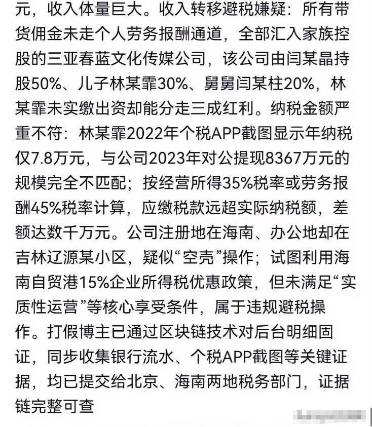 紧接着,更深层的黑幕被撕开,打假博主的一纸举报,揭开了她涉嫌偷税漏税的冰山一角。