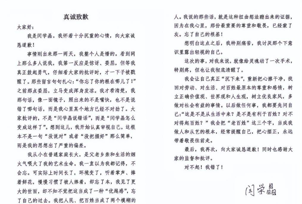 面对如此铁证如山的指控,闫学晶团队的回应却显得苍白无力。那个发在朋友圈里的道歉信,正文是冰冷的印刷体,只留下一个手写签名,被公众解读为缺乏诚意的“被迫止损”。