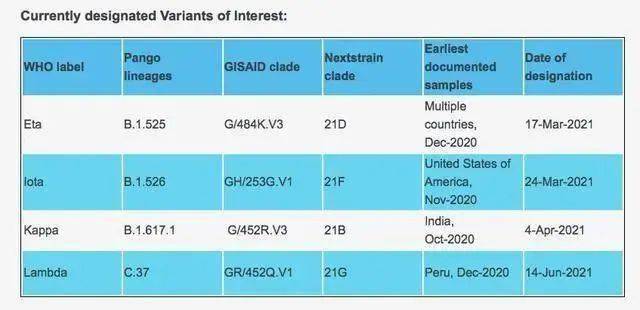据世界卫生组织(WHO)官网,截至8月4日,值得关注的新冠待观察突变株(VOI)共4种,“拉姆达”(Lambda)便属其中。